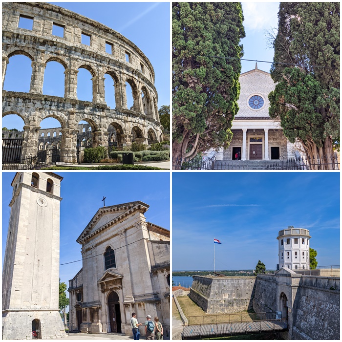 - Amfiteatr w Puli - najważniejszy zabytek miasta, który został zbudowany przez cesarza rzymskiego Wespazjana w czasie, gdy panowało tutaj Cesarstwo Rzymskie. Budowa została zakończona w 14 r. n.e. Amfiteatr nazywany też Areną w Puli – znajduje się w samym centrum miasta, tuż przy porcie. Dobrze widoczny jest zarówno ze starówki, jak i z morza. Pierwotnie budowla mogła pomieścić 23 tys. ludzi. Rozgrywały się tutaj walki gladiatorów. Amfiteatr wzniesiony jest z białego wapienia. Obecnie amfiteatr posiada 5000 miejsc siedzących. Organizowane są tutaj koncerty i inne ważne wydarzenia kulturalne.
